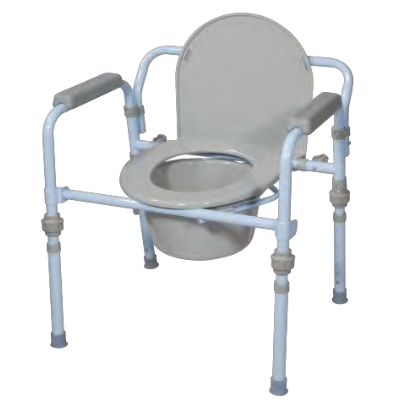 Steel 3 n 1 Commode with splash guard 7.5 qt bucket. Height from 15.75” to 21.5”. Max weight 350lbs.