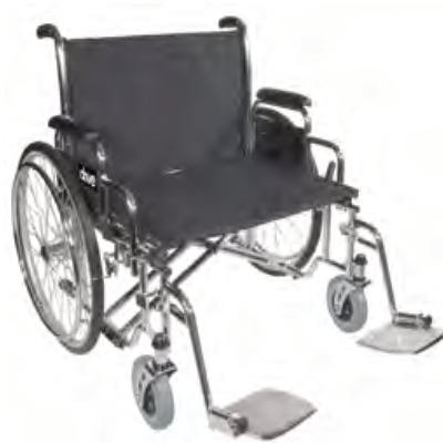 Extra HD Wheelchair with adjustable Hemi-height available. 26’ seat with detachable arm-rests. Several accessory options ( See Pg 13). Max Wt. 700lbs.