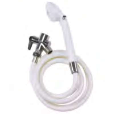 Deluxe Handheld Shower Spray with Diverter Valve. 80” white reinforced nylon hose.