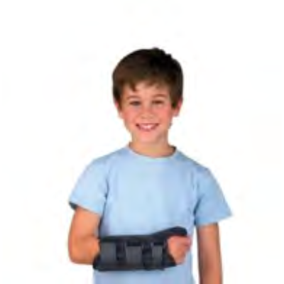 Pediatric wrist immobilization for wrist sprains and strains with thumb spica.